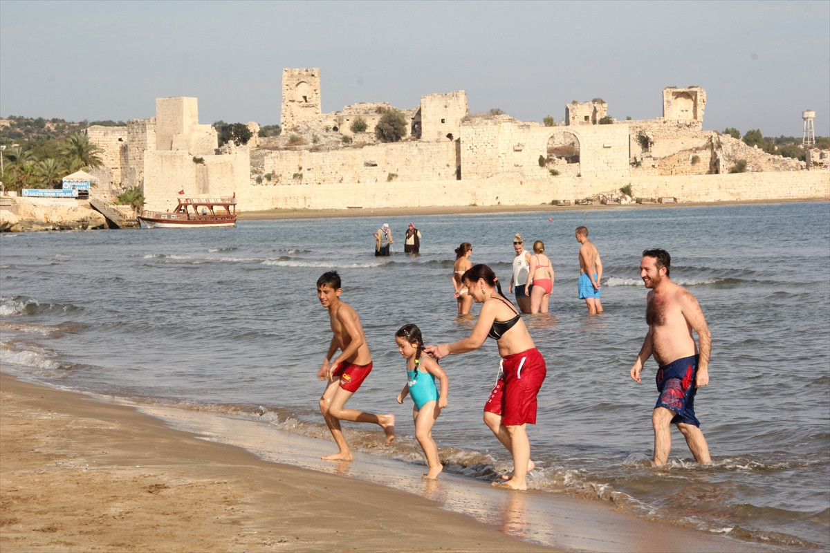 Bu arada, Kızkalesi'ni gezmeye gelen öğrenciler kasım ayı olmasına rağmen hava sıcaklığının 22 derece ölçüldüğü kentte denize girme şansı da buldu.