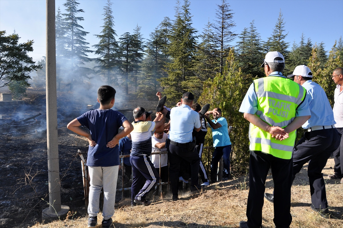 Çevre sakinlerinin de su dolu kovalarla müdahale ettiği yangın, yaklaşık 1 saatte söndürüldü.