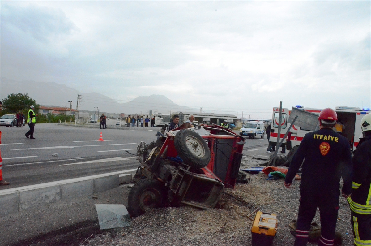 Alınan bilgiye göre, Kadir Çiğdem'in (85) kullandığı 42 K 0735 plakalı traktör, Muradiye Kavşağı'nda, Mehmet Ali Çoban (54) idaresindeki 42 PS 821 plakalı tuğla yüklü kamyon ile çarpıştı.