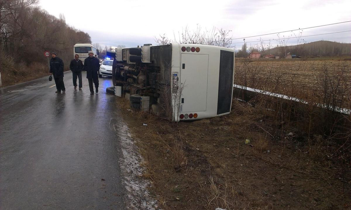 Göksel Güleç (40) idaresindeki 42 YA 589 plakalı lise öğrencilerini taşıyan servis minibüsü, Ereğli-Halkapınar karayolunun 10. kilometresinde buzlanma nedeniyle sürücüsünün direksiyon hakimiyetini kaybetmesi sonucu devrildi.