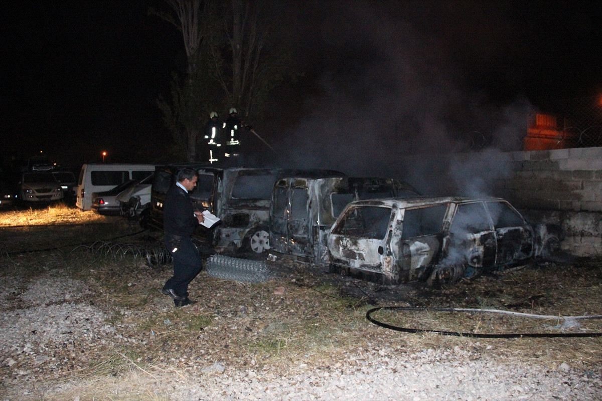 Uzun uğraşlar sonucu kontrol altına alınarak söndürülen yangında, bir otomobil ile üç hafif ticari araç kullanılamaz hale geldi.
