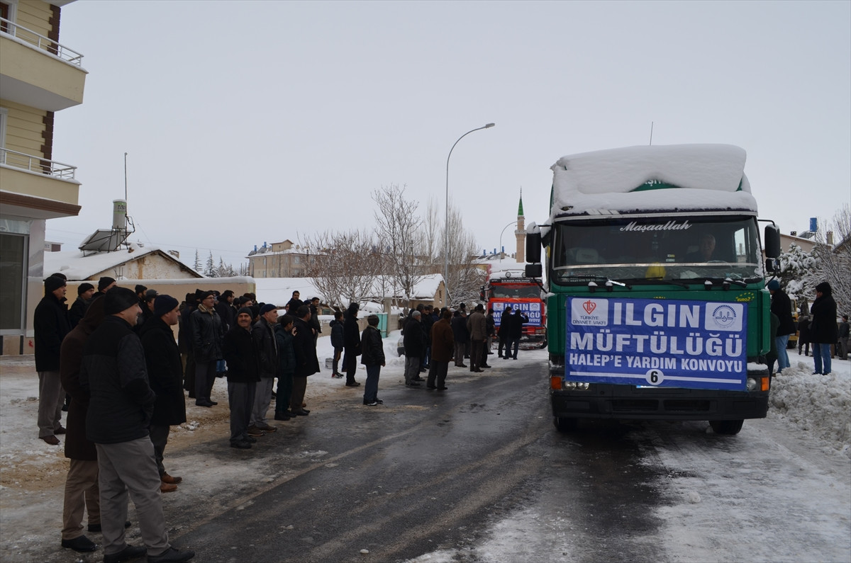 Diyanet İşleri Başkanlığı ve Türkiye Diyanet Vakfı öncülüğünde "Halep'te İnsanlık Ölmesin" sloganıyla başlatılan kampanya kapsamında Konya'nın Ilgın ilçesinde toplanan 6 tır yardım malzemesi, Haleplilere gönderildi.