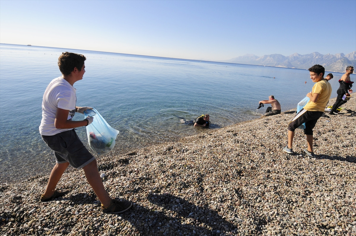 ANTALYA (AA) - Antalya'da 50 dalgıç ve gönüllü öğrenciler tarafından deniz dibi ve kıyı temizliği yapıldı.