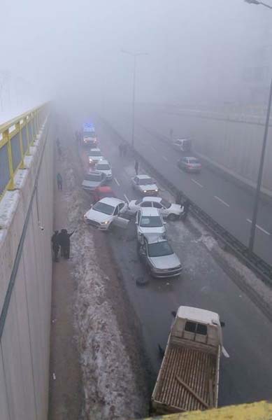 Konya'nın Karatay ilçesinde yoğun sis nedeniyle 32 aracın karıştığı zincirleme trafik kazası meydana geldi