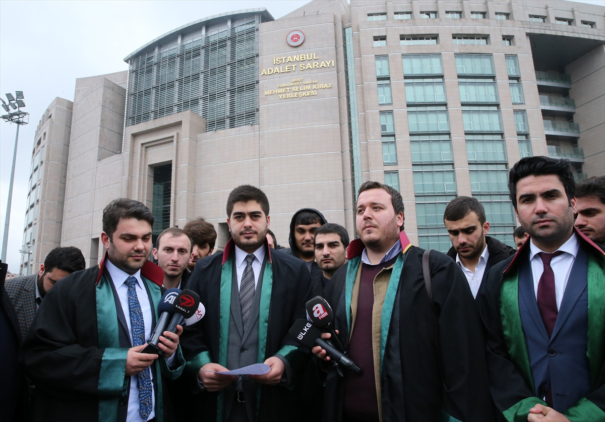 Hürriyet ve Adalet Derneği üyesi bir grup avukat, KPSS sorularının sızdırılmasına ilişkin 54'ü tutuklu 230 kişi hakkında Ankara'da açılan davanın mağdurlarına destek vermek için Çağlayan'daki İstanbul Adalet Sarayının önünde toplandı.