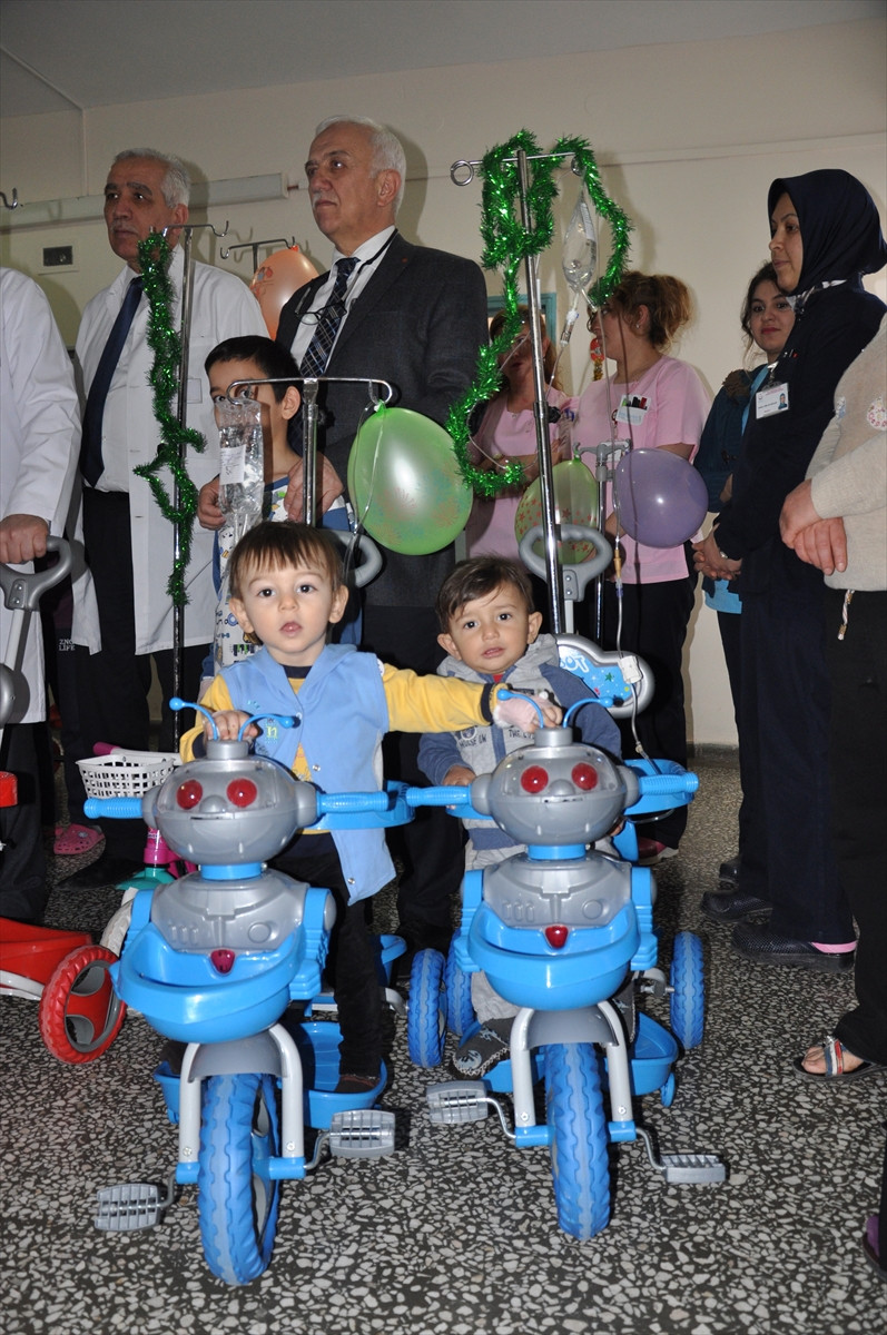 "Bu çerçevede çocuk servislerimize bisiklet tedarik ettik. Bu bisikletlerimize serum askıları monte ederek çocuklarımızın, hastalarımızın bisikletlerinin üzerinde tedavilerini alabilme olanağını sağladık. Böylece çocuklarımız son derece mutlu ve memnun bir şekilde hem tedavilerini alıyorlar hem eğlenebiliyorlar. Aileler de bu konuda biraz daha rahat ediyor."