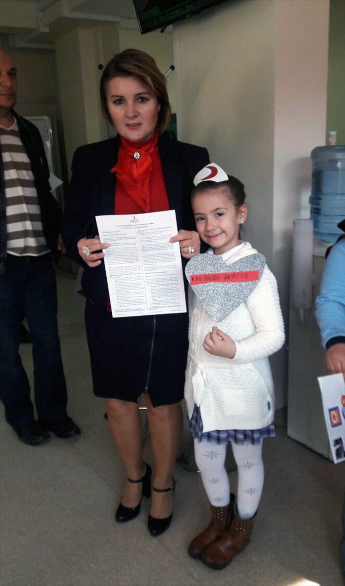 İZMİR (AA) - İzmir'de, hastanede kan bekleyen hastalardan etkilenen 7 yaşındaki ilköğretim öğrencisi Ecrin Geloğulları'nın girişimiyle, okuldaki öğretmen ve velilerin bağışta bulunması için kampanya düzenlendi.