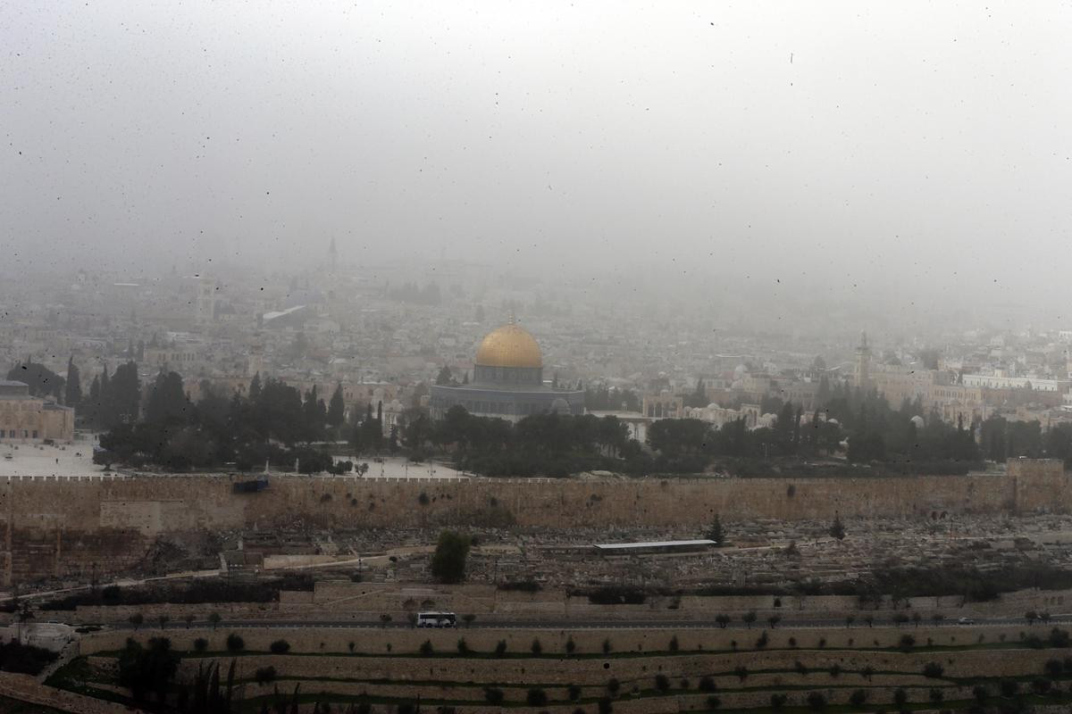 Mısır üzerinden gelen fırtınanın dünden beri bölgede oluşturduğu toz bulutu, özellikle bugün öğleden sonra Mescid-i Aksa'nın da bulunduğu kent merkezinde etkisini gösterdi. Fırtına nedeniyle görüş mesafesinin 20 metreye kadar düştüğü kentte, araçlardan ağaç yapraklarına kadar her yer ince bir toz tabakasıyla kaplandı.