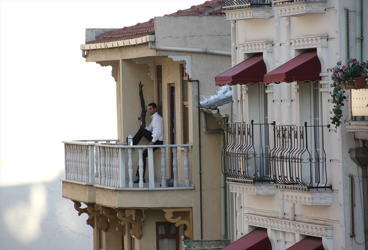 İSTANBUL (AA) - Kumkapı'da silahla girdiği banka şubesinden bir miktar para alarak çatı katına kaçan kişi, ikna edilmeye çalışılıyor.