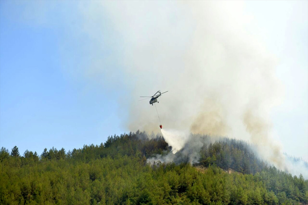 Yangına, üç yangın söndürme helikopteri, bir yangın söndürme uçağı ve arazözlerle müdahale ediliyor.
