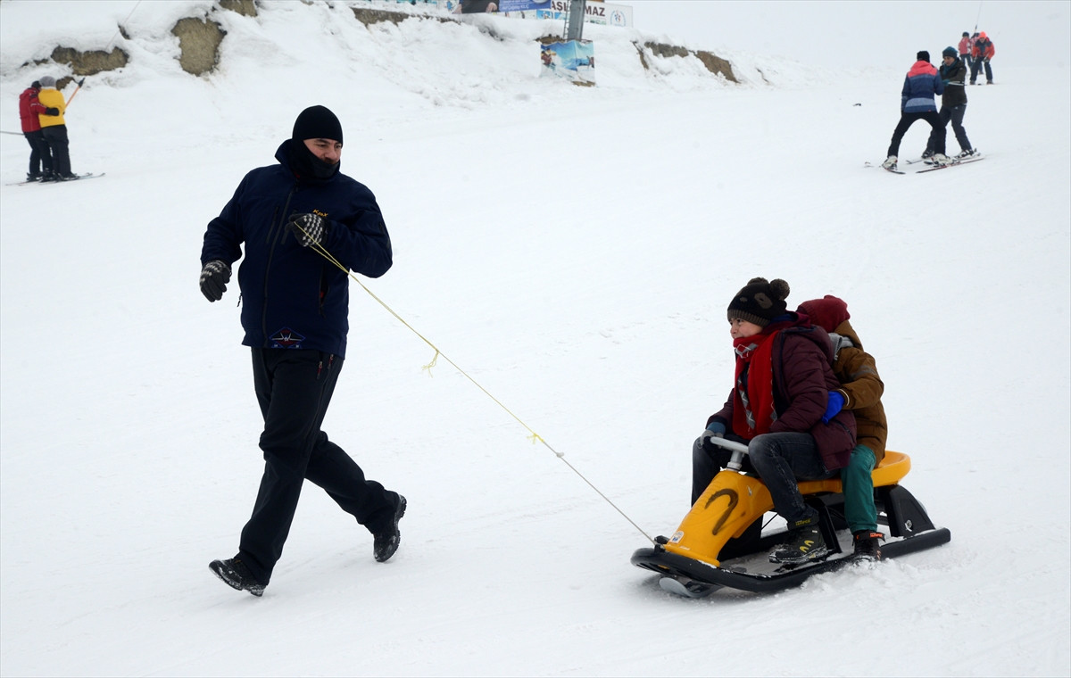 Kar kalınlığının yarım metreyi geçtiği pistte sis nedeniyle görüş mesafesinin yer yer 20 metreye kadar düşmesine rağmen snowboard, kayak ve kızakla kayanlar eğlenceli anlar yaşadı.