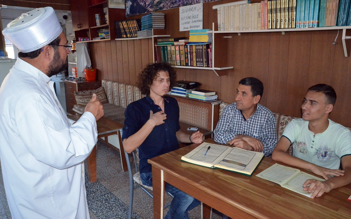 Cuma hutbelerini aynı anda engelliler için işaret diliyle de anlatan Şehitler Camisi imam hatibi Ahmet Aydın, İl Müftülüğünün destekleriyle yaz Kur'an kursunun yanı sıra engelli bireyler için de Kur'an ve dini eğitim verdiğini belirtti.
