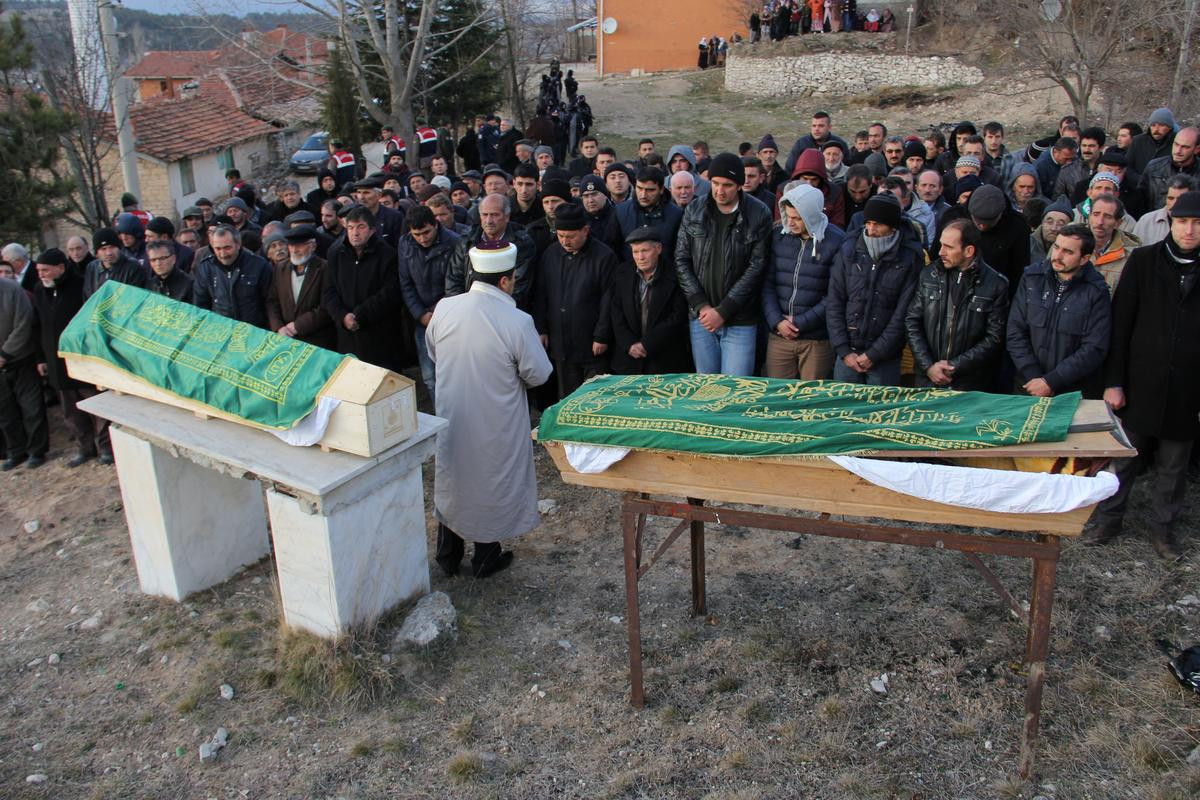 Amca ve yeğeninin cenazeleri, burada kılınan namazın ardından köy mezarlığında toprağa verildi. Defin sırasında sinir krizi geçiren aile bireylerini yakınları teskin etmeye çalıştı.