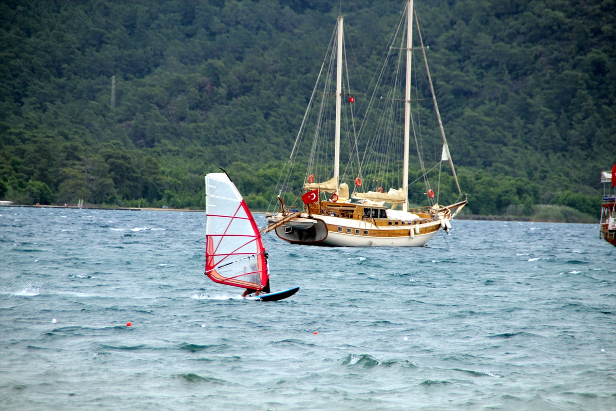 MUĞLA (AA) - Muğla'nın Marmaris ilçesinde saatteki hızı 50 kilometreyi bulan rüzgar nedeniyle sahiller boşaldı.