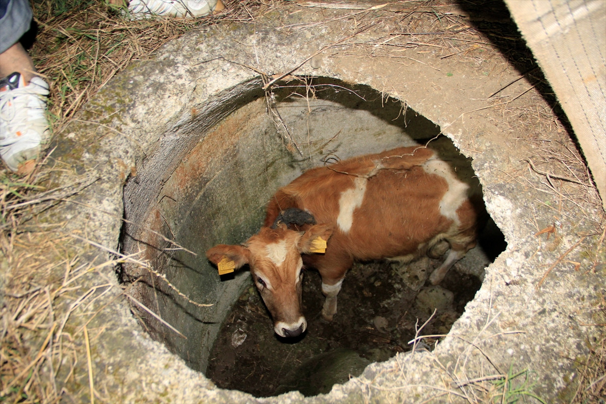 KOCAELİ (AA) - Kocaeli'nin Kartepe ilçesinde 3 metrelik kuyuya düşen dana, itfaiye ekiplerince kurtarıldı.