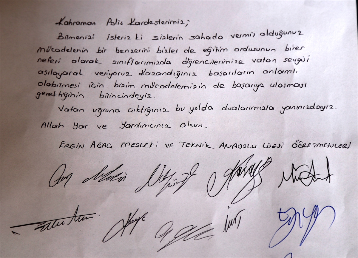 BURSA (AA) - Bursa'da, Ergin Ağaç Mesleki ve Teknik Anadolu Lisesinin öğrencileri, Mardin'de terör örgütü PKK mensuplarına yönelik operasyonlara katılan güvenlik güçlerine moral olması amacıyla 300'e yakın mektup yazdı.