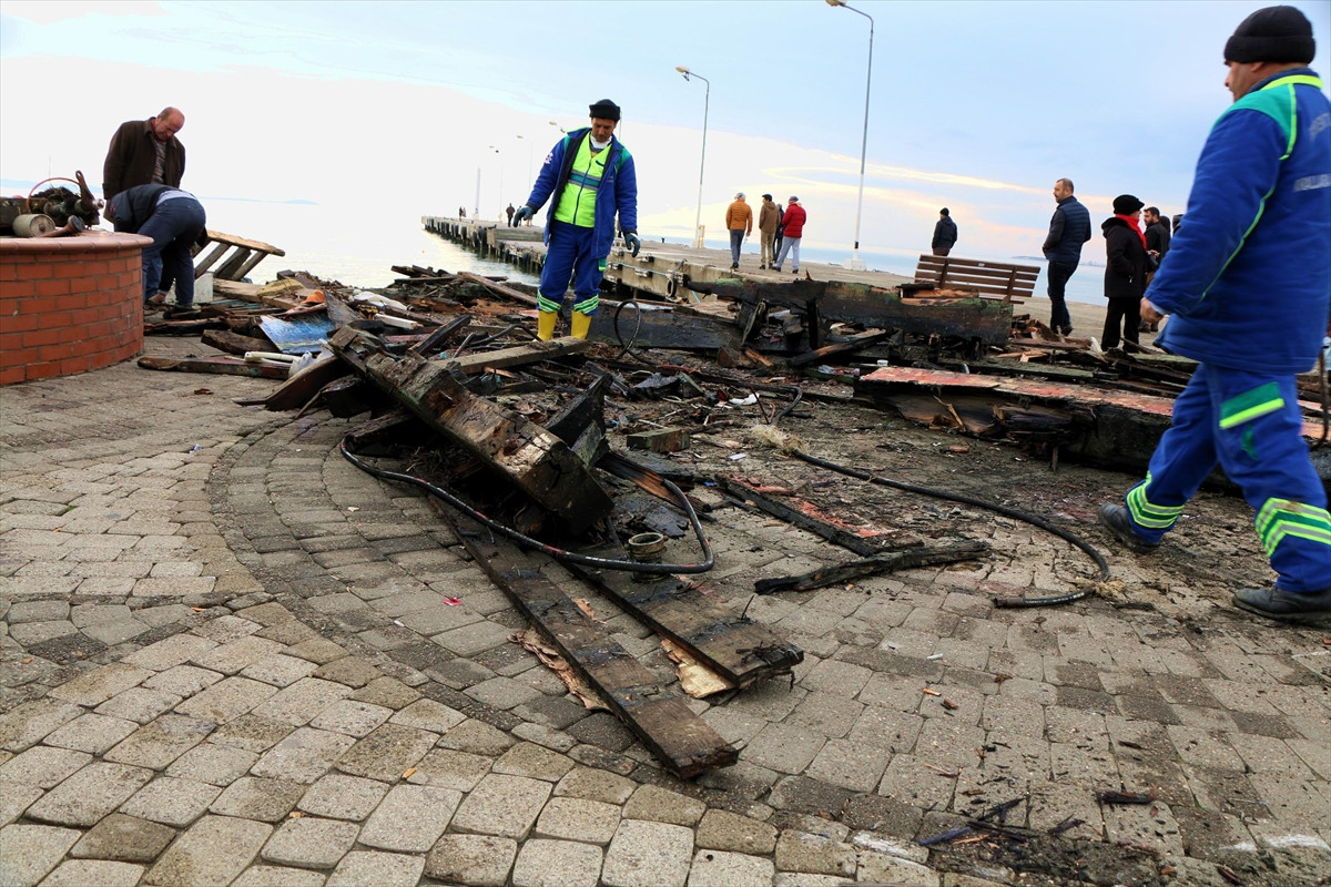 Alınan bilgiye göre, bir anda başlayan lodos nedeniyle oluşan dalgalar, Akçay iskelesinde demirli, yıllardır balık restoranı olarak hizmet veren Nermin-1 isimli gemiyi kıyıya itti. Gemi, dakikalar içinde karaya ve beton iskeleye vurarak tamamen parçalandı.