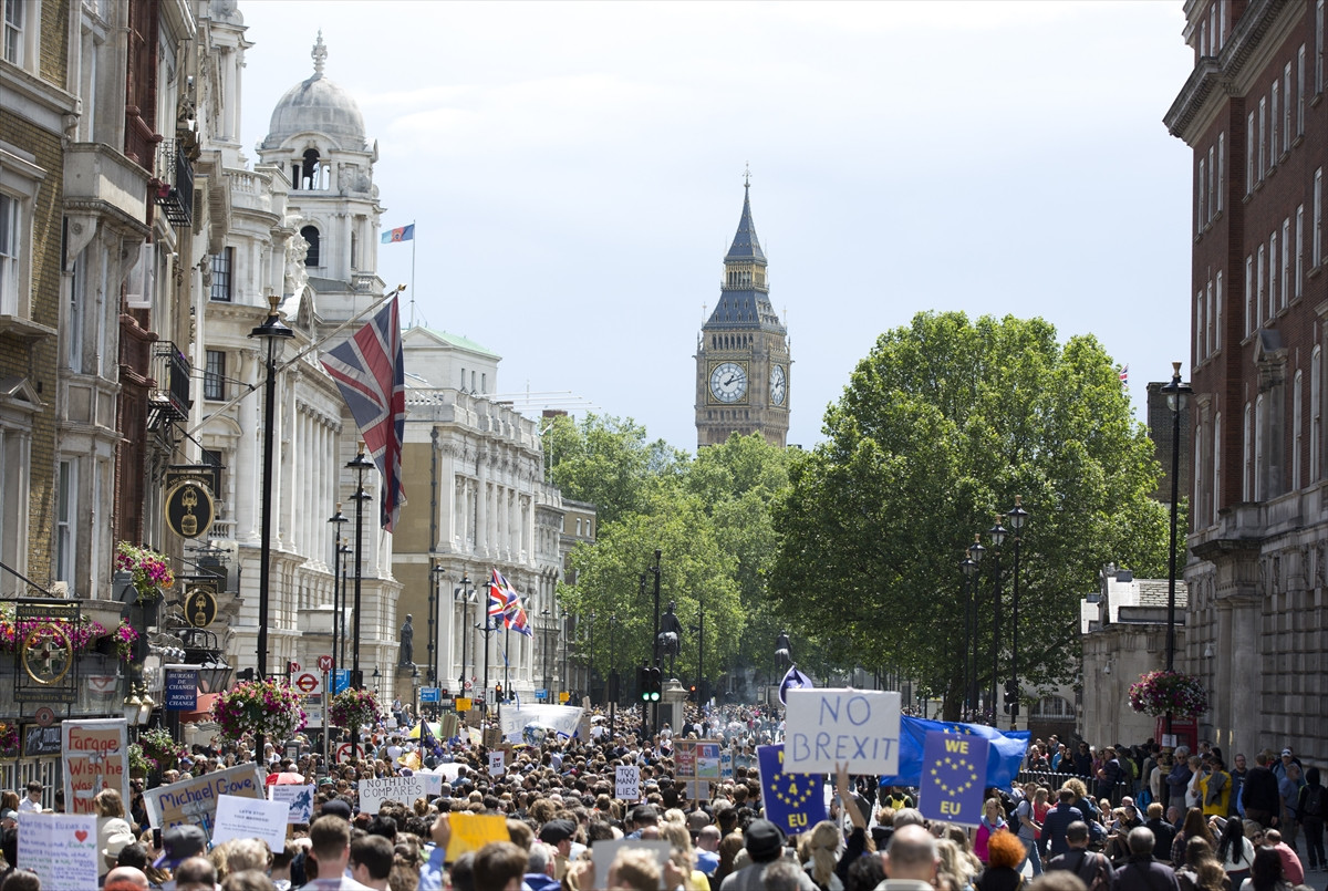 Yaklaşık 5 saat süren protestoda, AB destekçisi binlerce kişi, yürüyüş boyunca Brexit kararına yönelik tepkilerini "Yüzde 48 AB'yi istiyor", "48'iz, daha fazla yalan, daha fazla nefret yok", "Birlikte daha güçlüyüz" gibi sloganlar atarak dile getirdi, "Ben Avrupamdan çıkmıyorum", "AB benim geleceğim", "Bizim geleceğimiz, bizim tercihimiz" ve "Ben İngilizim, ben Avrupalıyım" yazılı pankartlar taşıdı.