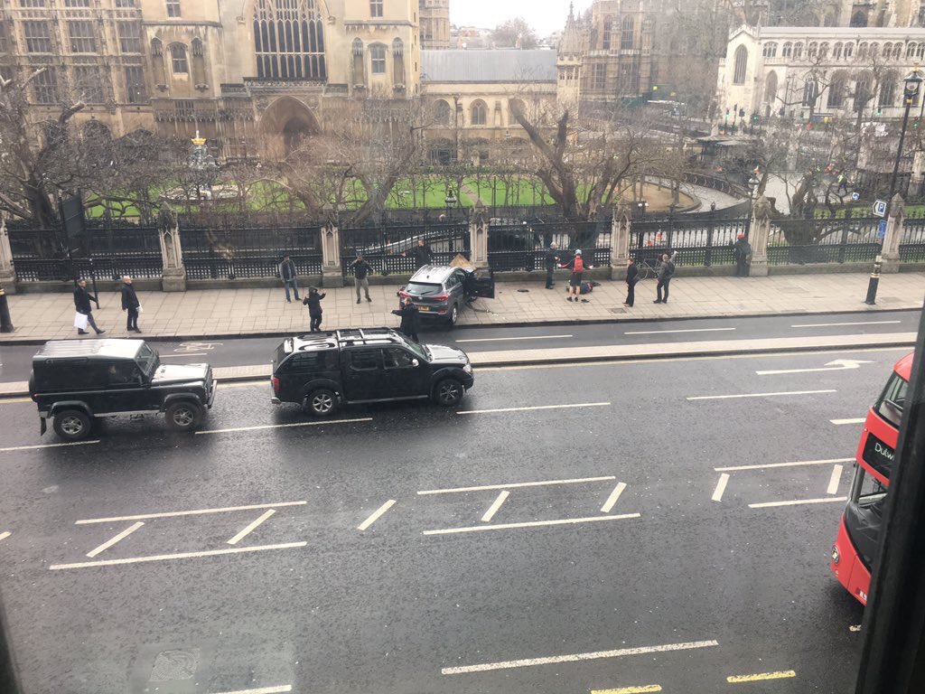 Reuters haber ajansı, olayı ilk olarak İngiliz parlamentosu dışında yüksek bir gürültü duyulduğunu bildirerek aktardı. Ajans, görgü tanıklarına dayandırdığı haberinde silahlı polislerin parlamento binası dışına doğru koştuklarını duyurdu.