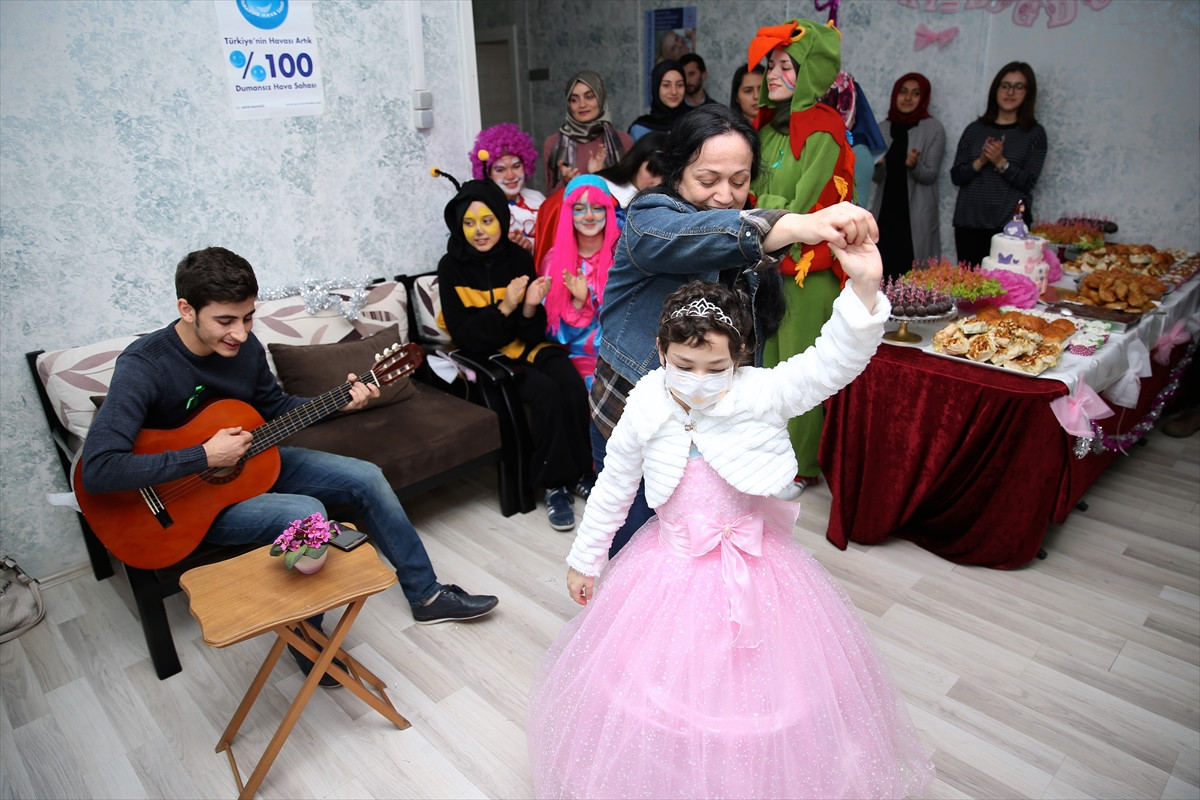Hastalığı nedeniyle 5 yıl aradan sonra ilk kez doğum günü kutlanan 10 yaşındaki lösemi hastası Ece, palyaço kıyafeti giyen üniversite öğrencileri ve annesi Aysel Aktaş'la müzik eşliğinde oynayarak gönlünce eğlendi. Etkinliğe katılan davetliler, Ece'ye hediyelerini verdi, hatıra fotoğrafı çektirdi.