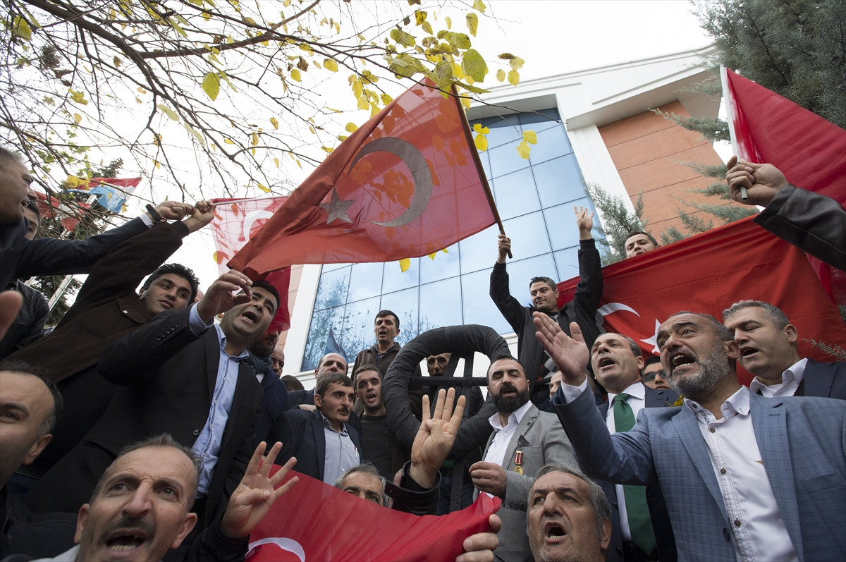 15 Temmuz Demokrasi Şehitleri, Gazileri ve Terör Mağdurları Derneği, Anadolu Köy Korucuları ve Şehit Aileleri Konfederasyonu ile Türkiye Gaziler ve Şehit Aileleri Vakfı üyeleri, Lüksemburg'un Ankara Büyükelçiliği önünde toplandı.