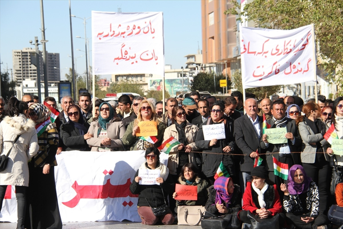 İki aydır maaş alamadıklarını söyleyen memurlar, kent merkezinde düzenledikleri gösteride maaş krizinden Erbil hükümetini sorumlu tuttu. "Maaşlarımız nerede?", "Hükümet Öğretmenine Sahip Çık" ve "Maaşımızı İstiyoruz" yazılı pankartlar taşıyan göstericiler, toplu halde valiliğe doğru yürüyüş gerçekleştirdi. Bazı göstericiler hükümete tepkilerini "kırmızı kart" göstererek ortaya koydu.