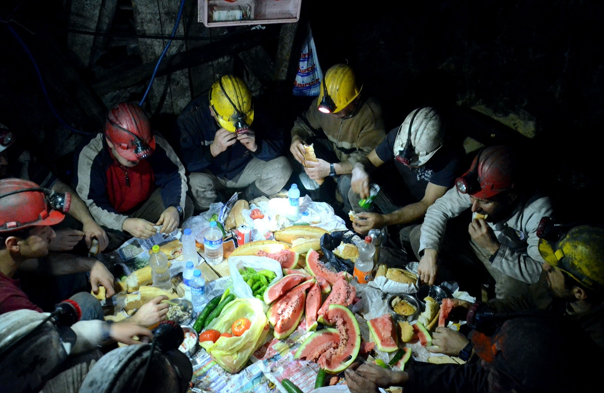 ZONGULDAK (AA) - Zonguldak'ta kömür ocağında çalışan işçiler, yerin metrelerce altında ilk sahurlarını yaptı.