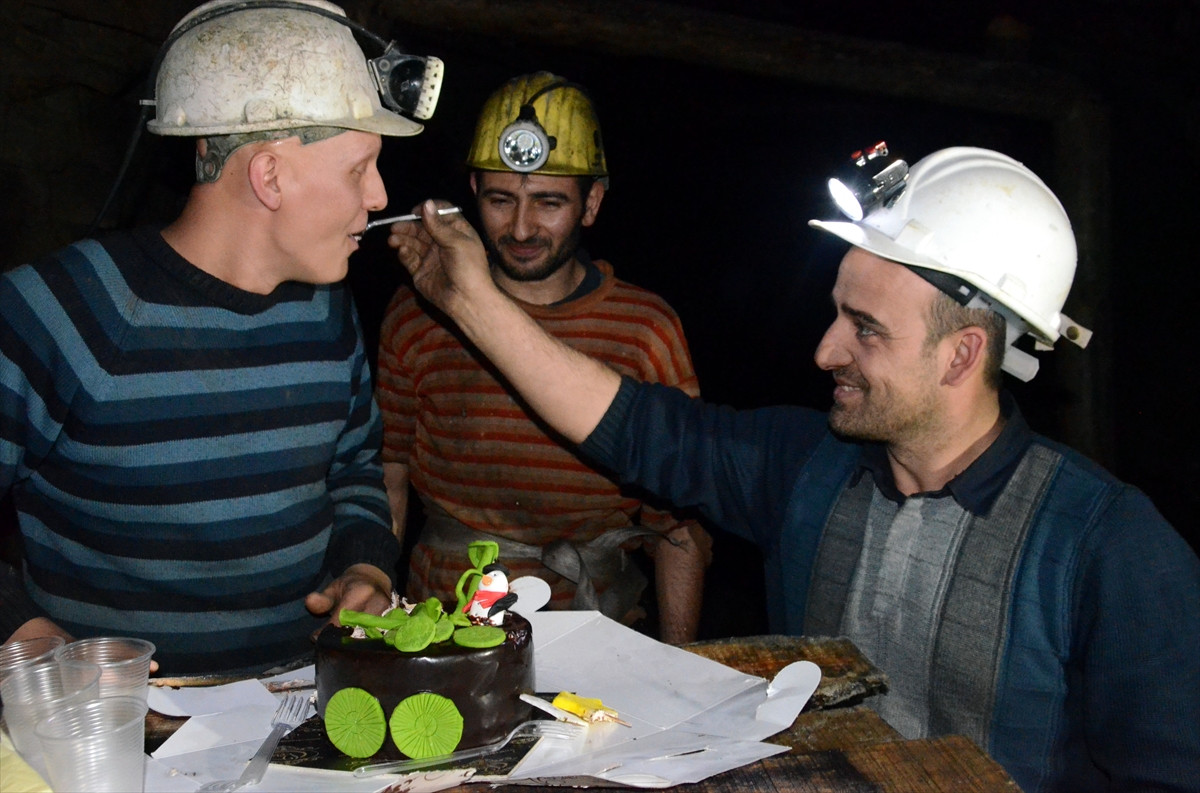 ZONGULDAK (AA) - Zonguldak'taki kömür ocağında çalışan işçiler, 2017 yılına yerin metrelerce altında pasta keserek girdi.