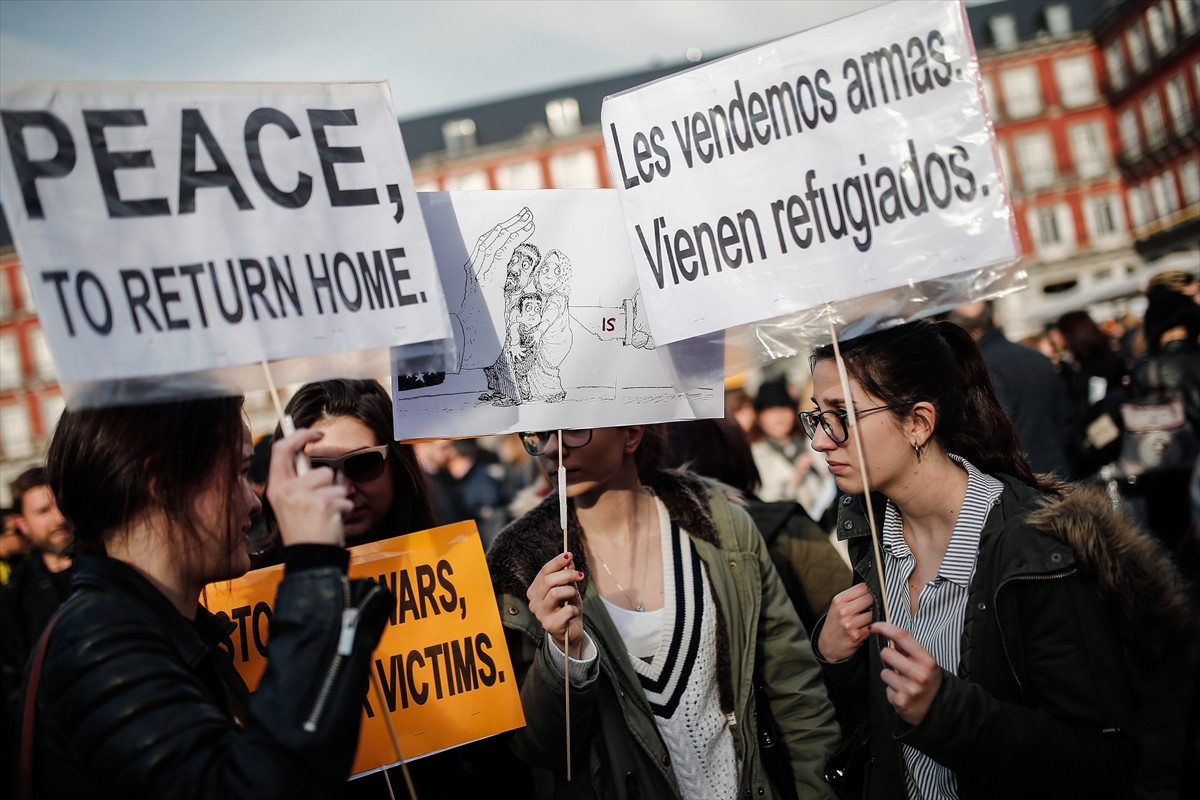 Ülkedeki bazı sivil toplum kuruluşlarının, 3 büyük işçi sendikasının ve sol görüşlü siyasi partilerin çağrısıyla Madrid'in ünlü Mayor Meydanı'nda sığınmacılar için insan zinciri eylemi yapıldı.