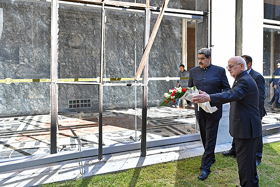 Maduro, görüşmenin ardından Kahraman'ın nezaretinde Meclisin, FETÖ'nün 15 Temmuz darbe girişimi gecesi zarar gören bölümünü ziyaret ederek, çiçek bıraktı.