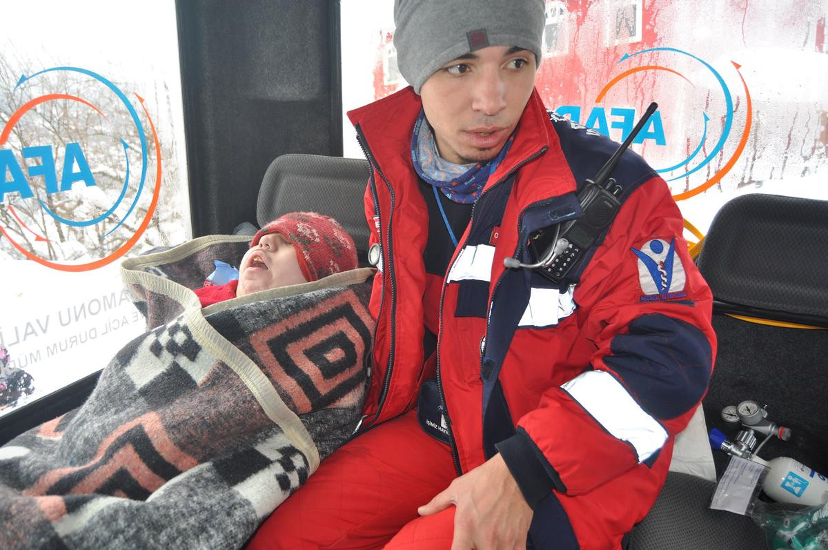 Paletli kar aracıyla ulaştıkları Çulkun’a ilk müdahaleyi yapan ekipler, daha sonra aynı güzergahta bulunan Toklukaya köyünde doğum sancıları başlayan Halime Bilgin (27) ve solunum yetmezliği yaşayan engelli Eren Bilgin (13) ile yüksek ateş şikayeti bulunan 1,5 yaşındaki Kadir Baran Koç'u da alarak ilçeye döndü.