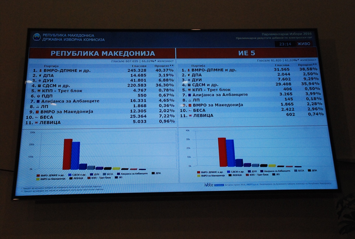 Devlet Seçim Komisyonunun (DIK) açıkladığı verilere göre, sağ eğilimli İç Makedonya Devrimci Örgütü-Makedonya'nın Ulusal Birliği Demokratik Partisi (VMRO-DPMNE) öncülüğündeki ittifak önde gidiyor.