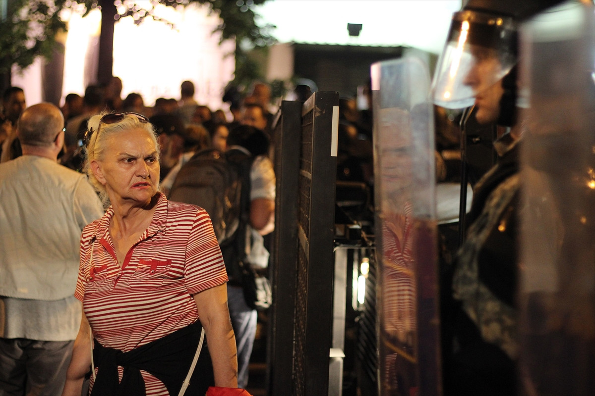 Göstericiler, önceki günlerde olduğu gibi önce çalışmalarına destek olmak amacıyla Özel Yetkili Savcılık binası önünde toplandı, ardından Makedonya Meclisine doğru yürüdü.