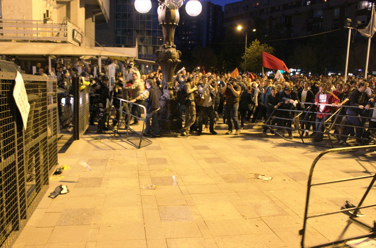 Makedonya Meclisi önünde başlayan protesto, hükümet binası önünde sonlandı.