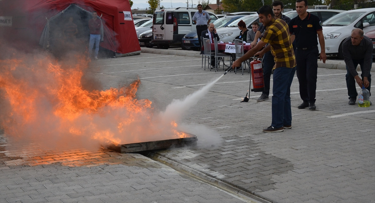 İtfaiye ekipleri ve hastane personeli de yangın söndürme tüpleriyle senaryo gereği çıkarılan yangına müdahale ederek, söndürdü.