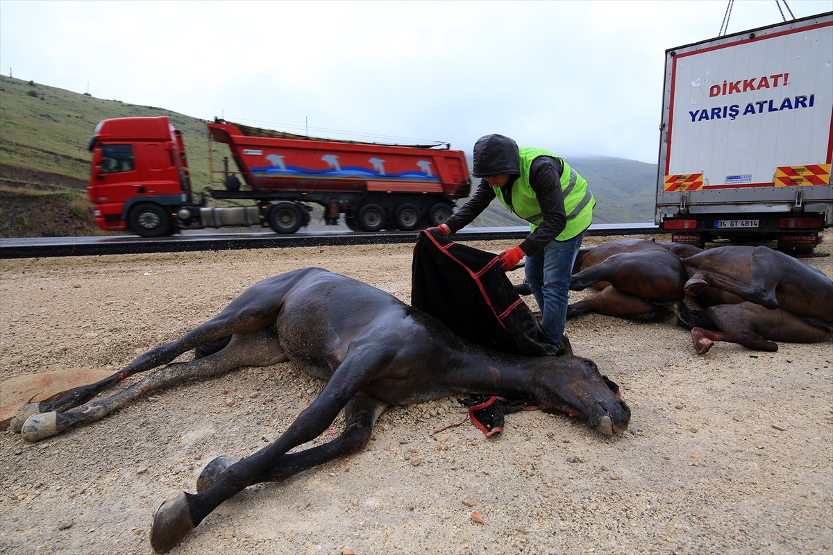 Kamyonetin kasasındaki 3 yarış atından 2'si telef olurken, biri yaralandı.