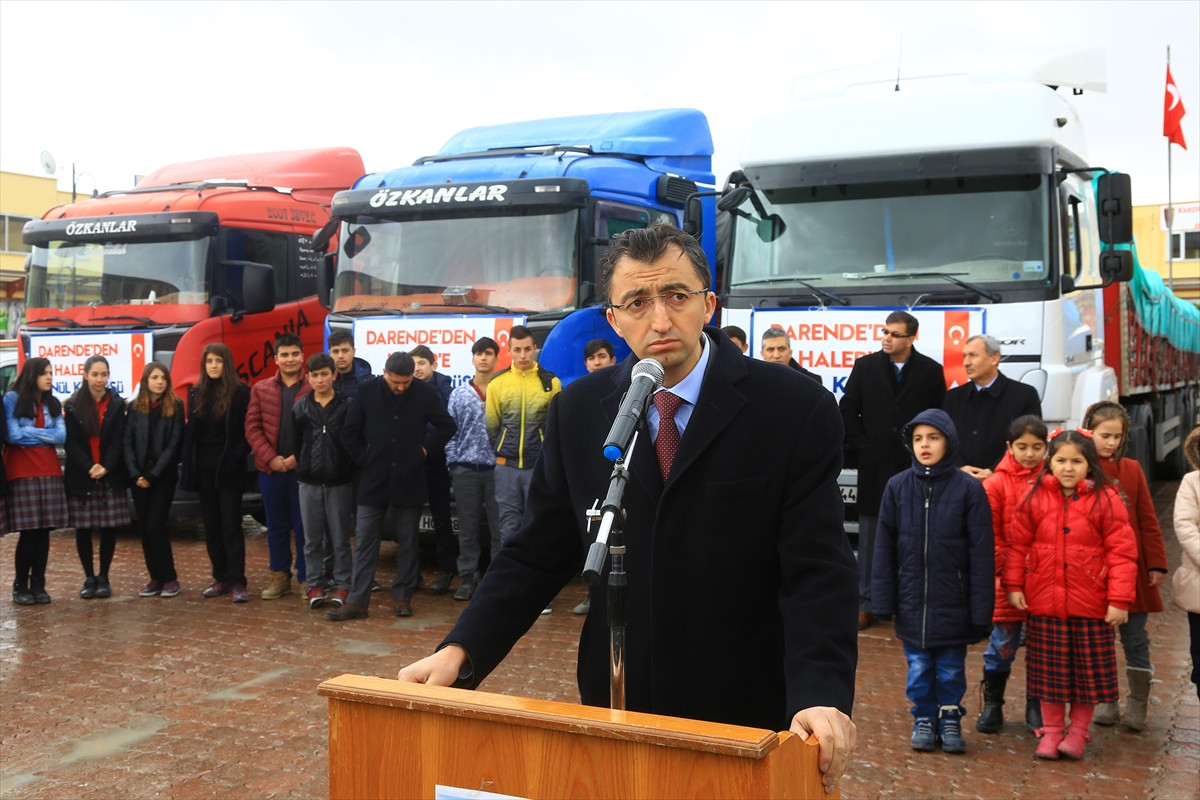 İlçe Müftüsü Ahmet Varol'un yaptığı duanın ardından yardım tırları, Halep'e ulaştırılmak üzere yola çıktı.