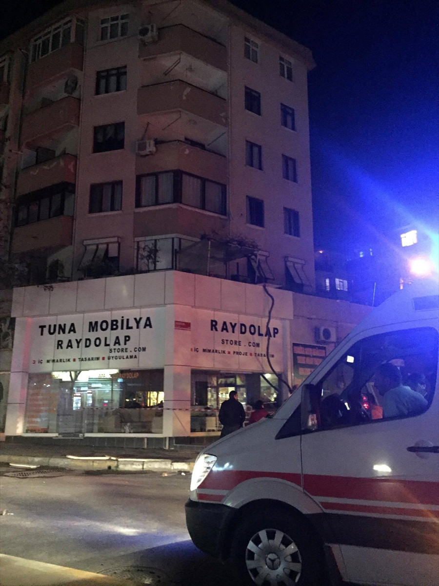 Yan taraftaki apartmanda yaşayanlar, giriş katındaki terastan itfaiye merdiveniyle aşağı indirildi.