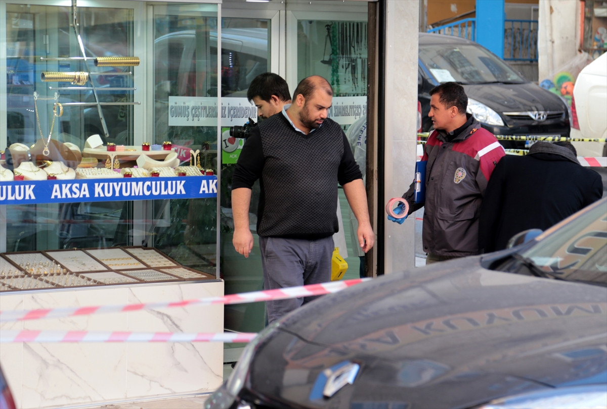 Bu arada kuyumcunun silahını çekerek soyguncuların peşinden ateş etmesi sonucu, park halindeki iki araca kurşun isabet etti.