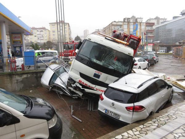 Kontrolden çıkan kamyon, Orhangazi ile Bağdat caddeleri kesişiminde 2 servis minibüsü ve 4 araca çarptı. Ardından Bağdat Caddesi'ndeki benzin istasyonuna giren kamyon, istinat duvarını aşıp 2 aracın üzerine düşerek durabildi.