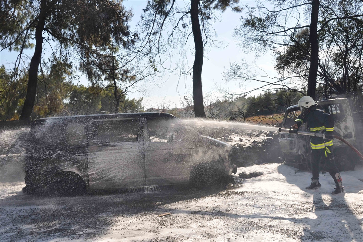 ANTALYA (AA) - Manavgat ilçesinde yerleşim yerleri yakınındaki ormanlık alanda çıkan yangında 2 araç tamamen yanarken, alevler ormanlık alana yayılmadan söndürüldü.