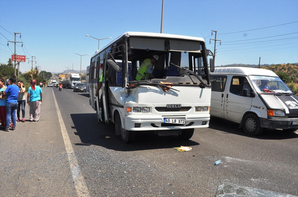 Edinilen bilgiye göre, bir fabrikaya işçi götüren Muhammer Yüksel (57) yönetimindeki 45 LB 972 plakalı işçi taşıyan midibüs, Kaynar mevkisinde önünde seyreden İbrahim Demir (45) yönetimindeki 35 VSU 79 plakalı kamyona çarptı.