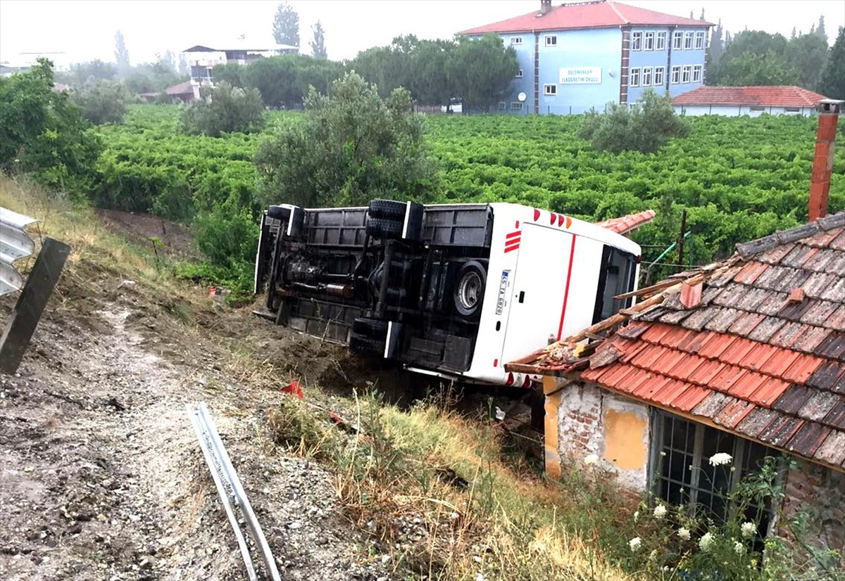 MANİSA (AA) - Manisa'nın Alaşehir ilçesinde öğrencileri taşıyan midibüsün devrilmesi sonucu 26 kişi hafif yaralandı.