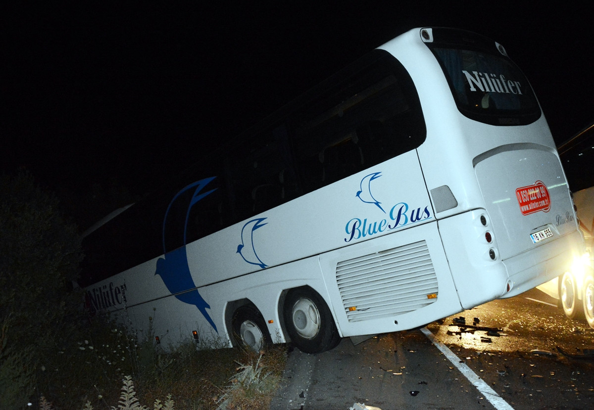 Alınan bilgiye göre, ilçenin İlyaslar Mahallesi kavşağında İzmir'den İstanbul'a giden Mehmet Aslan (53) yönetimindeki 45 KN 955 plakalı yolcu otobüsü ile aynı istikamette seyreden Faruk Şahin (52) idaresindeki 35 AL 9950 plakalı kamyonet çarpıştı. Kontrolünü kaybeden otobüs sürücüsü aynı şeritte seyreden Behiç Kenan Gümüş (27) idaresindeki 34 ZC 7186 plakalı otomobille de çarpışarak karşı şeride geçti.