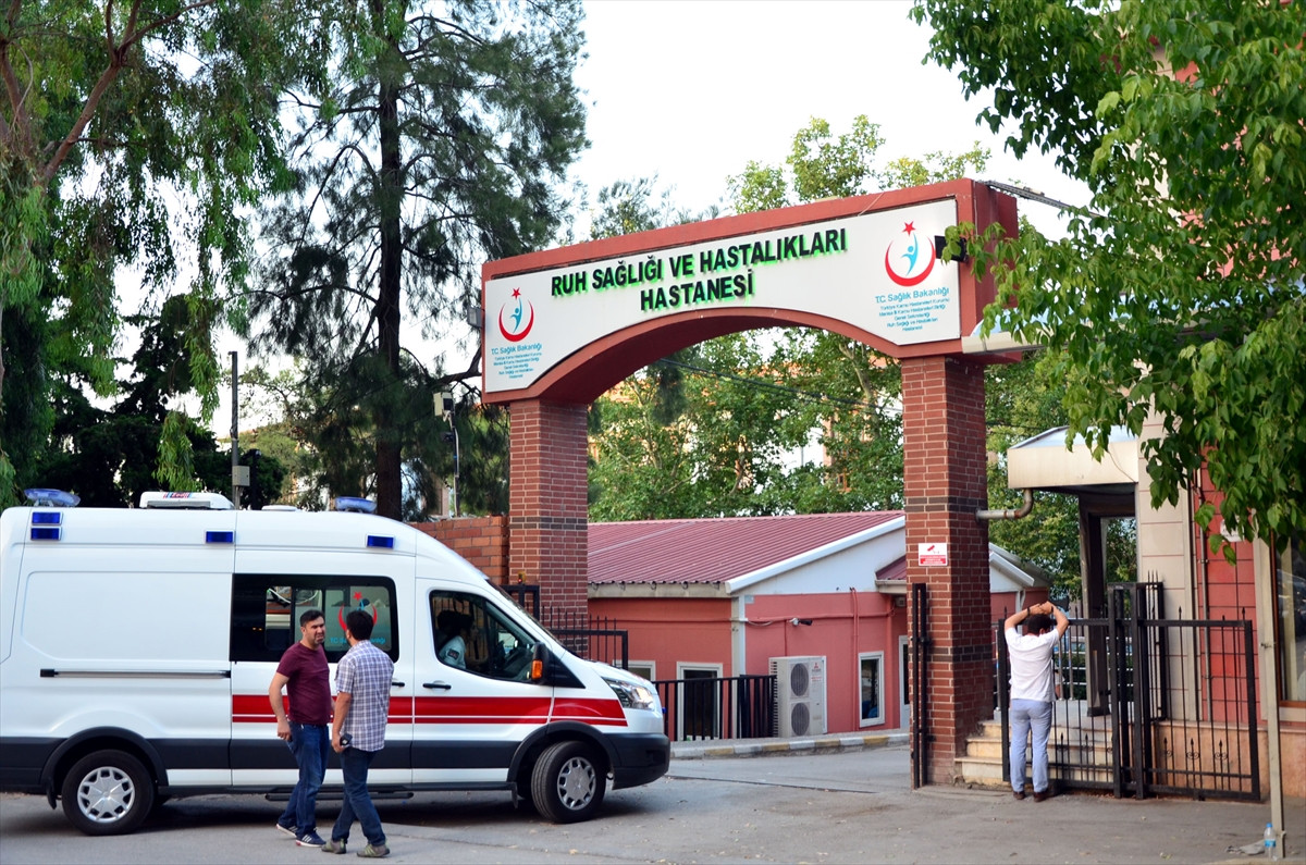 Salihli Devlet Hastanesinden güvenlik önlemleri eşliğinde Manisa Ruh Sağlığı ve Hastalıkları Hastanesine getirilen F.Y, ambulanstan 112 Acil ekipleri tarafından sedye yardımıyla indirildi.