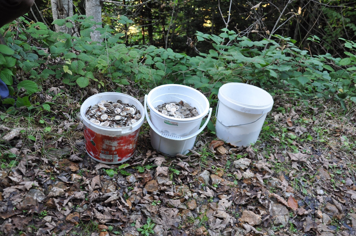 SAKARYA (AA) - Sakarya'nın Hendek ilçesinde mantar toplamaya giden köylüler, 3 kova dolusu madeni para buldu.