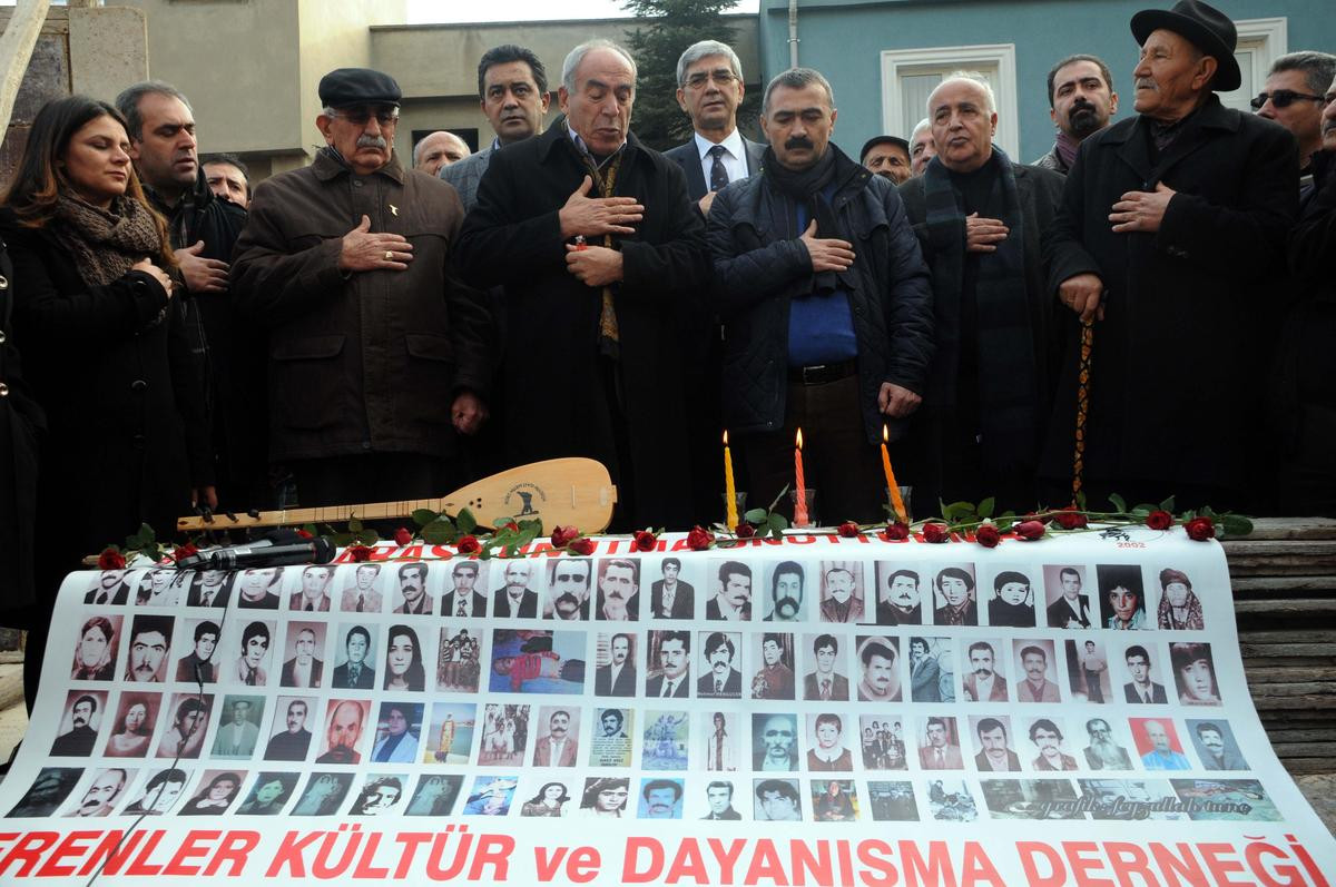 KAHRAMANMARAŞ (AA) - Maraş olaylarının 37. yıl dönümü nedeniyle Erenler Kültür ve Dayanışma Derneği önünde toplanan grup, basın açıklamasının ardından cemevi inşaatının bulunduğu alana kadar yürüyüp saygı duruşunda bulundu, dua etti.