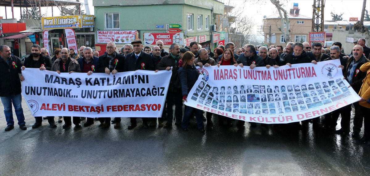 KAHRAMANMARAŞ (AA) - Maraş olaylarının 38. yılı dolayısıyla Erenler Kültür ve Dayanışma Derneği önünde toplanan grup, cemevi inşaatının bulunduğu alana kadar yürüdü ve dua etti.