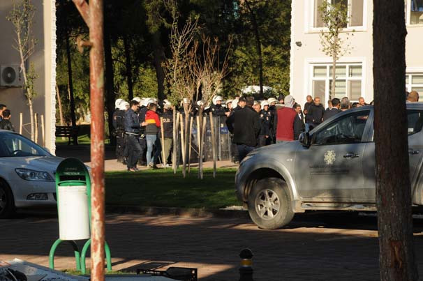 İçişleri Bakanlığı'nın Mardin Valisi Mustafa Yaman'ı Büyükşehir Belediyesi'ne kayyum olarak görevlendirmesinin ardından, Sabah erken saatlerden itibaren belediye binası önünde ve çevresinde olağanüstü güvenlik önlemleri alındı. Mardin Emniyet Müdürlüğü'ne bağlı özel harekat timlerinin de aralarında bulunduğu güvenlik güçleri, Büyükşehir Belediyesi önünü bariyerlerle kapattı. Belediye binası girişlerinde kimlik kontrolü yapan polis giriş-çıkışlara kontrollü olarak izin verirken, çalışanların binanın bahçesine girmesine izin verdi. Bilgi işlem daire başkanlığı ile 1 kişi gözaltında Binalarda polisin bomba araması sürerken, Büyükşehir Belediyesi Genel Sekreteri Baran İlhan ile birlikte belediye bahçesinde toplanan yaklaşık 50 belediye çalışanı, sık sık slogan atarak kayyum kararını protesto etti. Grup içerisinde taşkınlık çıkaran Bilgi İşlem Daire Başkanı Bayram Kayık ile adı öğrenilemeyen 1 kişi görevli polise mukavemetten gözaltına alınırken, polisin Mardin Büyükşehir Belediyesi'ndeki incelemeleri sürüyor. Bu arada büyükşehir belediyesinin WEB sitesinin yayını da durduruldu.
