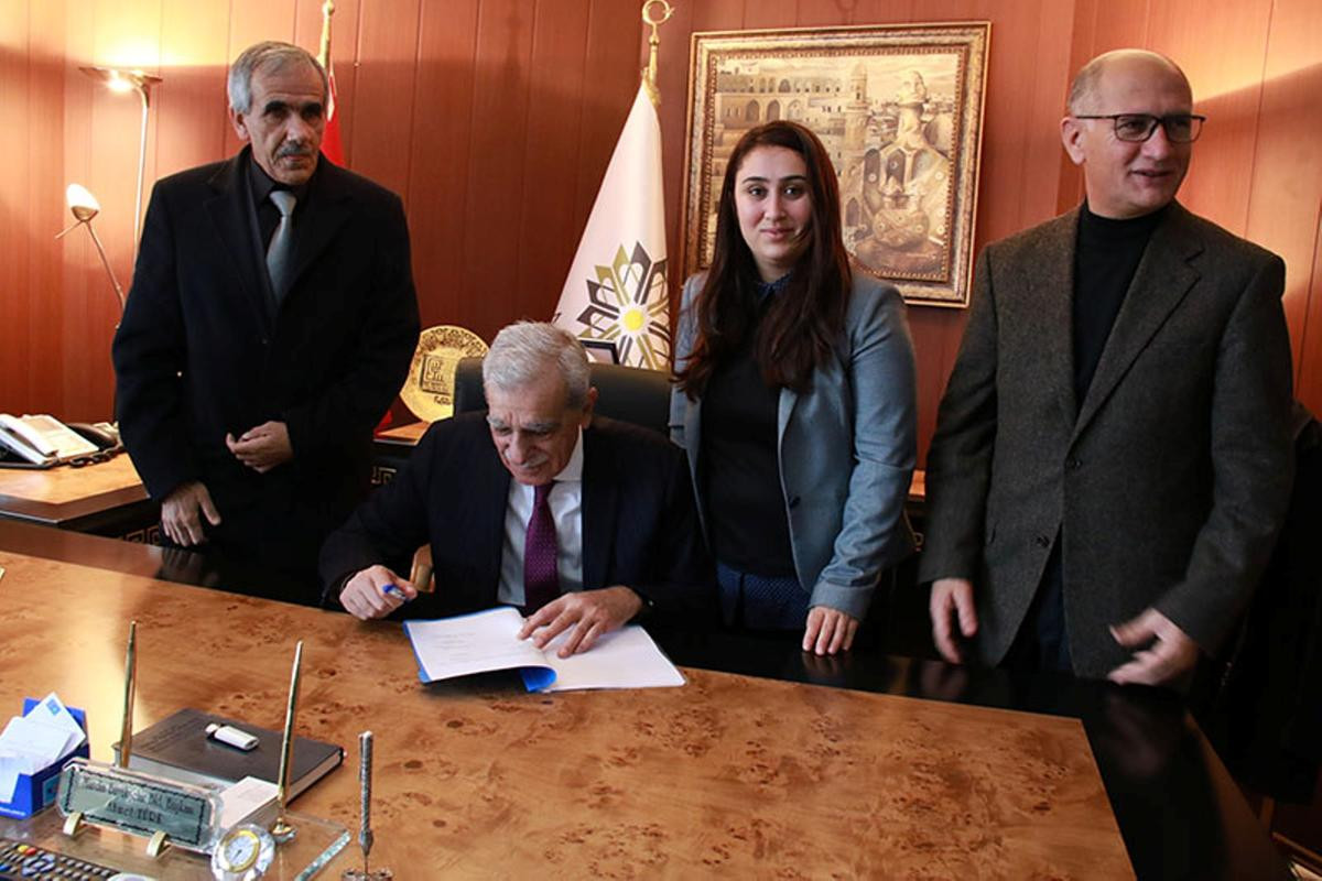 Büyükşehir Belediyesinden yapılan yazılı açıklamada, sözleşmenin Mardin Büyükşehir Belediye Başkanı Ahmet Türk'ün makam odasında imzalandığı bildirildi.